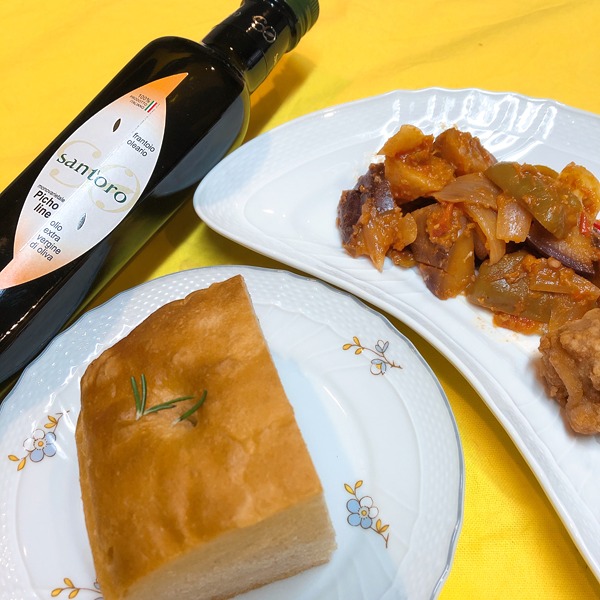 サントーロのエキストラバージンオリーブオイル Picholine を使ったフォカッチャを焼いて下さいました!