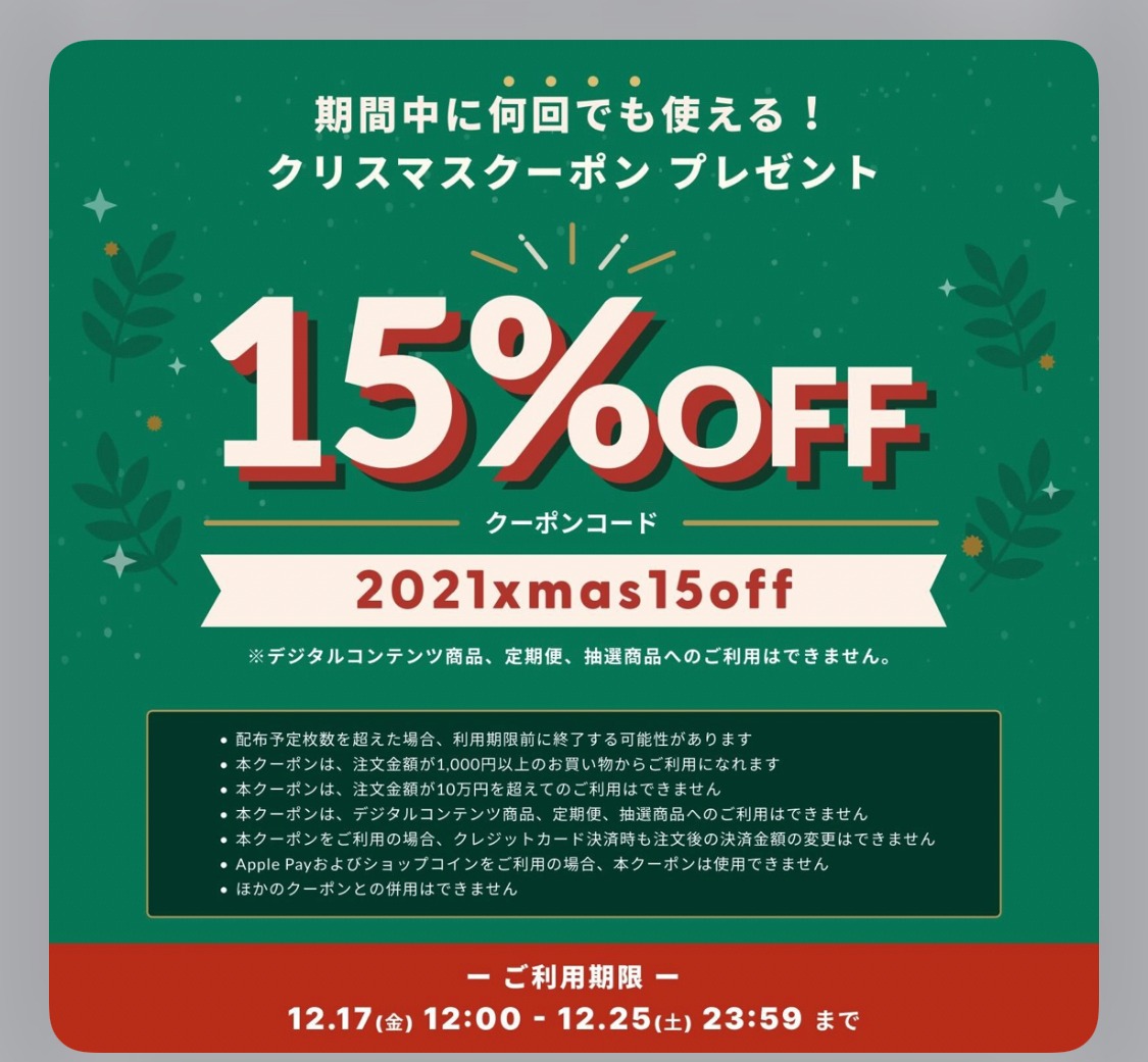 オンラインショップ限定クリスマスクーポンキャンペーンを実施❗️